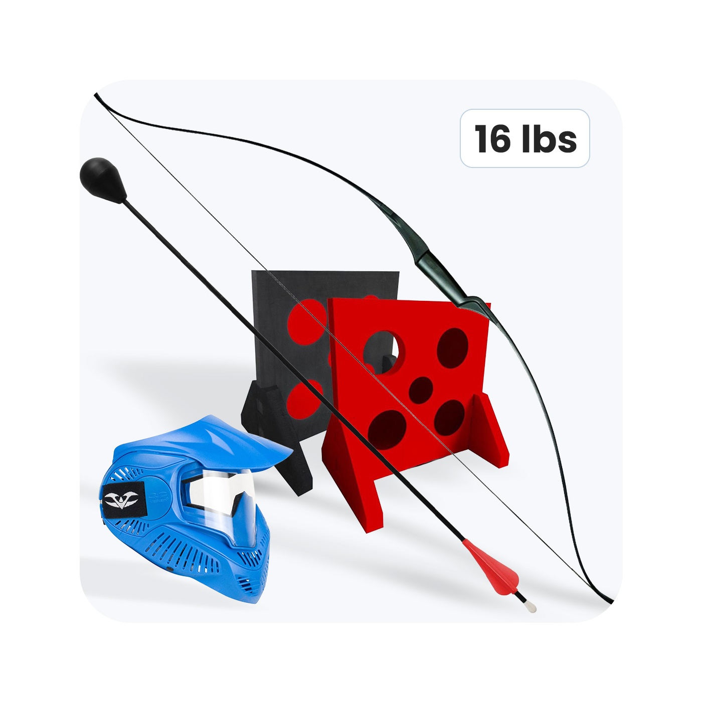 The Archery Tag set with 16 lbs bows and speed arrows is the ideal solution for organizers of family events, camps, and rentals serving younger groups. The lower draw weight bows are lightweight and easy to handle, allowing children and beginners to safely engage in dynamic gameplay.