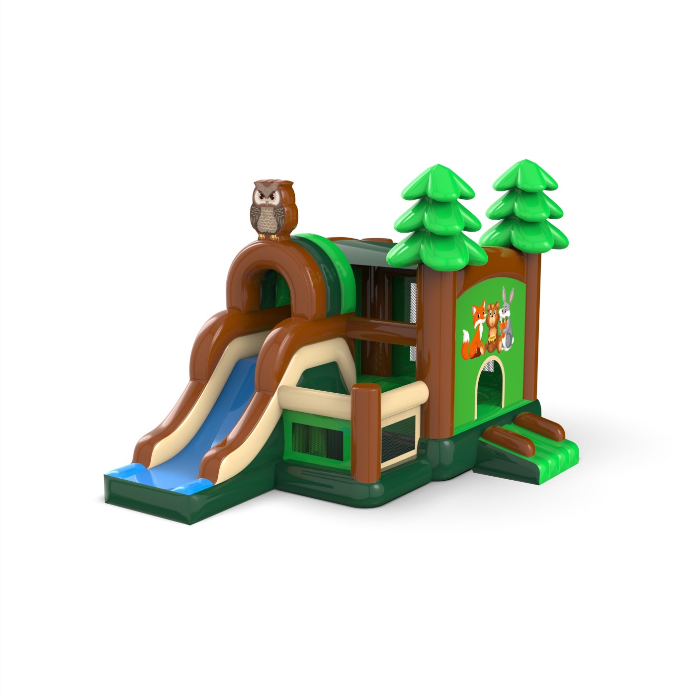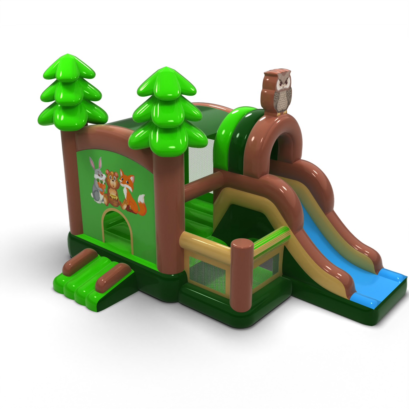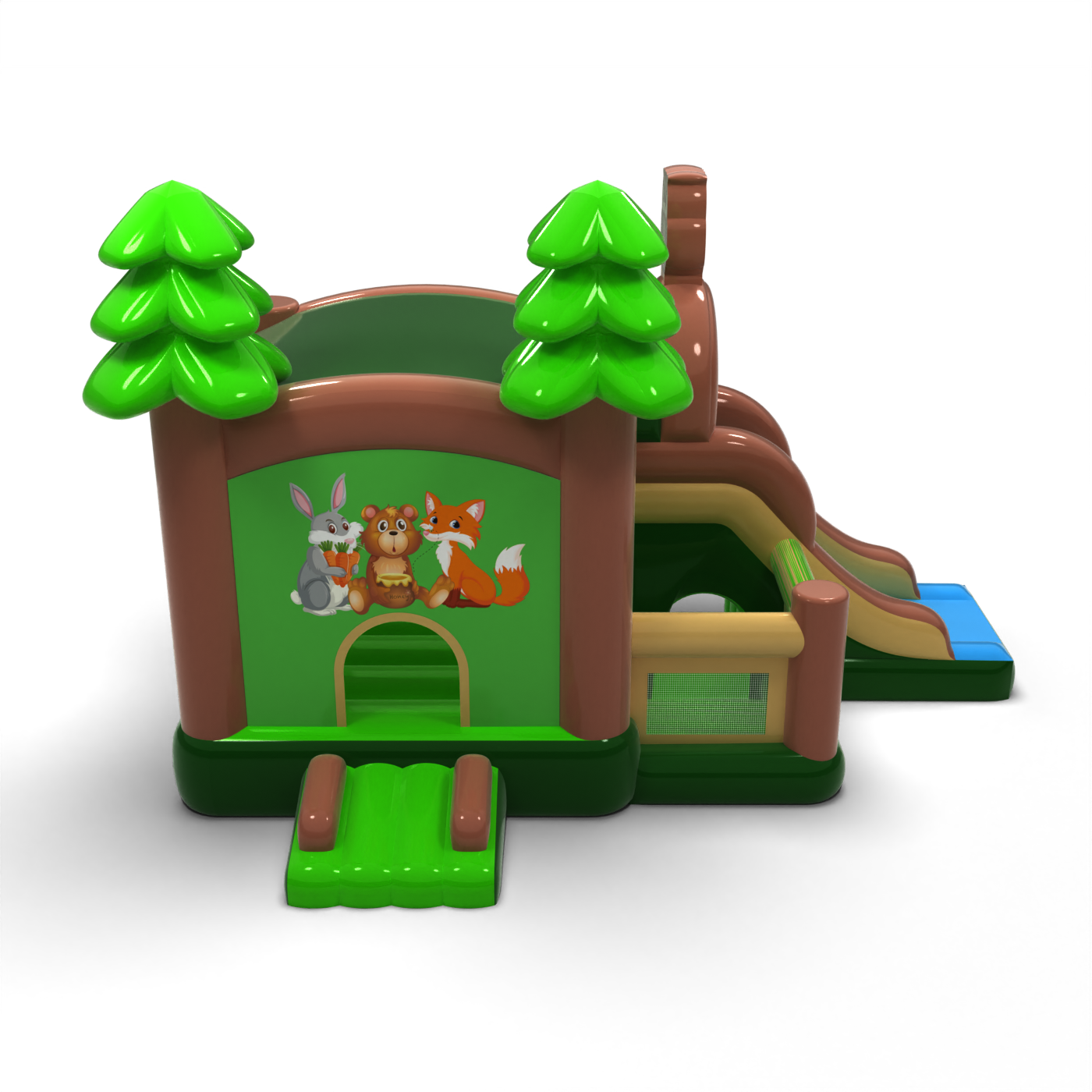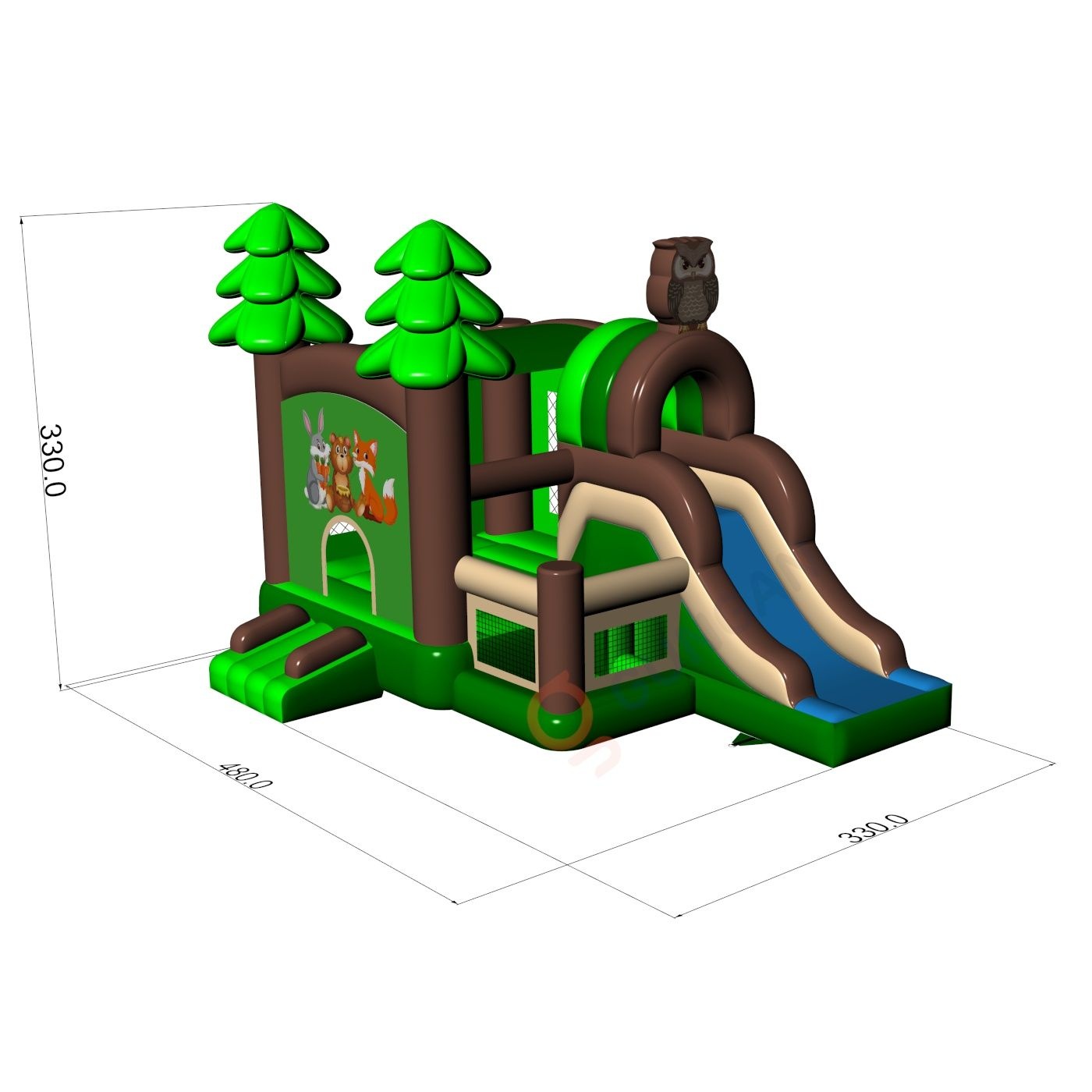 Bouncy castle forest combo is designed for all fans of joyful bouncing. Children love playing on it – jumping around and taking on roles inspired by the attraction’s theme. Bouncy castle forest combo isn’t made just for the youngest kids. Inflatables from this category are often richly decorated and filled with features that encourage active outdoor fun. Inflatable castles can create a fantastic world of adventure, perfect for hours of joyful play with friends and peers. It can also be combined with other products from our range to build a beautiful, fairy-tale experience full of excitement and movement.