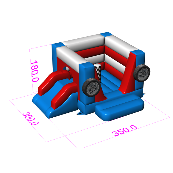 A version of the bouncy castle with a slide in a car theme is an option for organisers who want to provide children with even more active fun. The combination of a classic jumping area with a small slide adds variety to the time spent on the apparatus and prolongs its appeal. The distinctive colour scheme and automotive details look good in pictures, and the design is safe and easy to use. Get a practical attraction that you can use both indoors and outdoors.