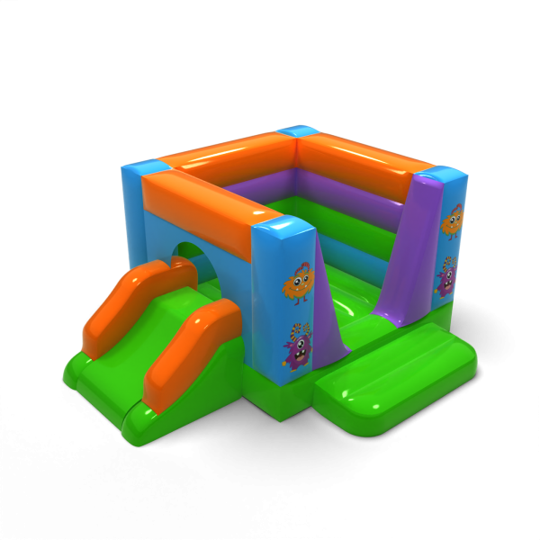 The version with a slide provides an extra dose of fun for children - in addition to the jumping area, toddlers can enjoy a short, colourful slide. The smiling monster motifs give the structure a friendly character, and its small size makes it easy to set up both outside and inside HoReCa facilities. It is a versatile attraction that enriches the animation offer for children.