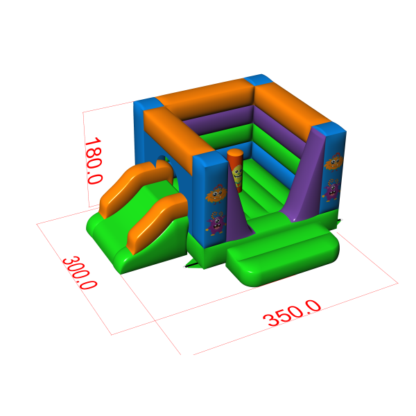 Small bouncy castle with slide - in a monster theme