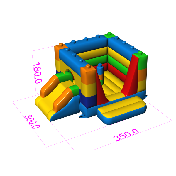 Small bouncy castle closed with slide - in a colourful blocks motif is designed for all fans of joyful bouncing. Children love playing on it – jumping around and taking on roles inspired by the attraction’s theme. Small bouncy castle closed with slide - in a colourful blocks motif isn’t made just for the youngest kids. Inflatables from this category are often richly decorated and filled with features that encourage active outdoor fun. Inflatable castles can create a fantastic world of adventure, perfect for hours of joyful play with friends and peers. It can also be combined with other products from our range to build a beautiful, fairy-tale experience full of excitement and movement.