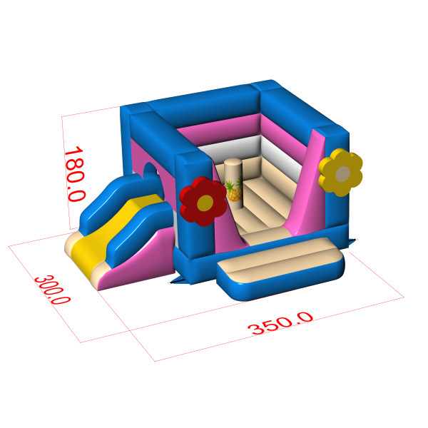 This small inflatable with a slide in a Hawaiian theme is ideal for events in hotel, restaurant or event spaces. The low-profile design allows the attraction to be set up indoors as well, and the colourful design with a flower motif makes the bouncy castle an eye-catcher for children and looks good in photographs. The built-in mini slide increases the functionality of the attraction without the need for more space. Introduce a compact attraction that is fun with minimal space requirements.