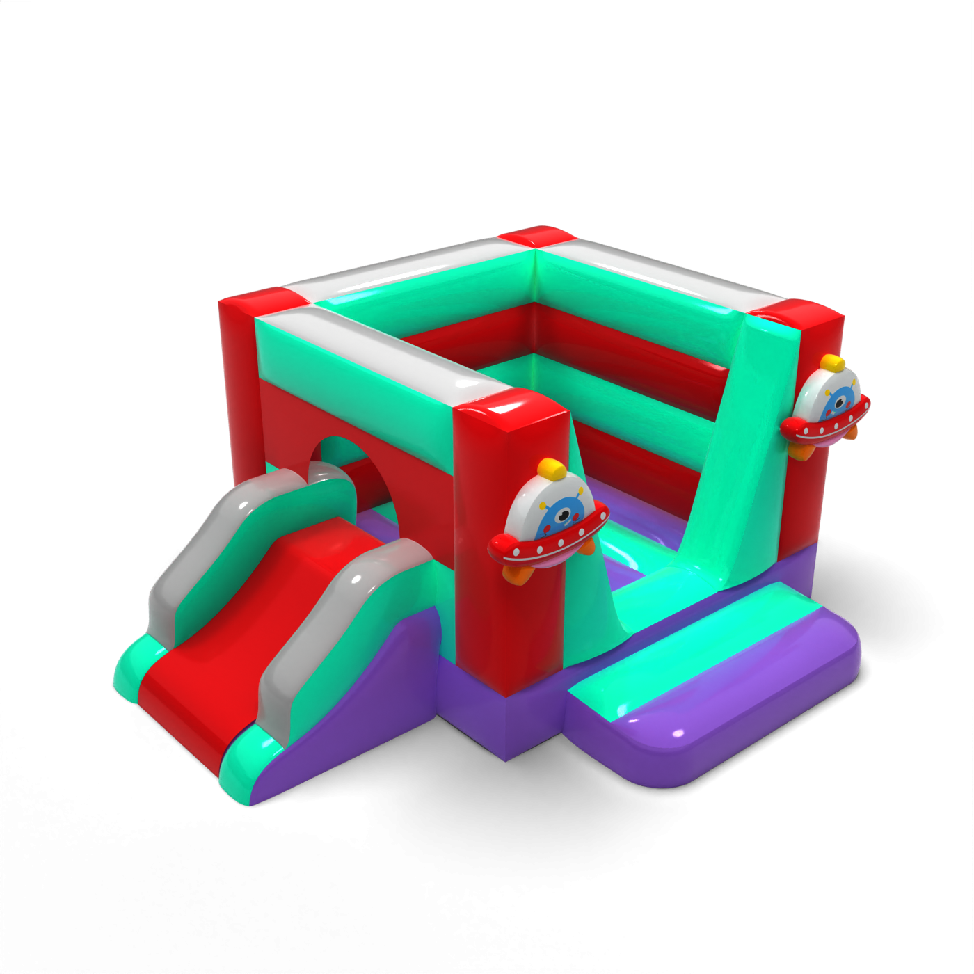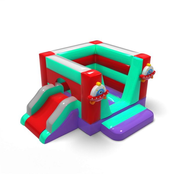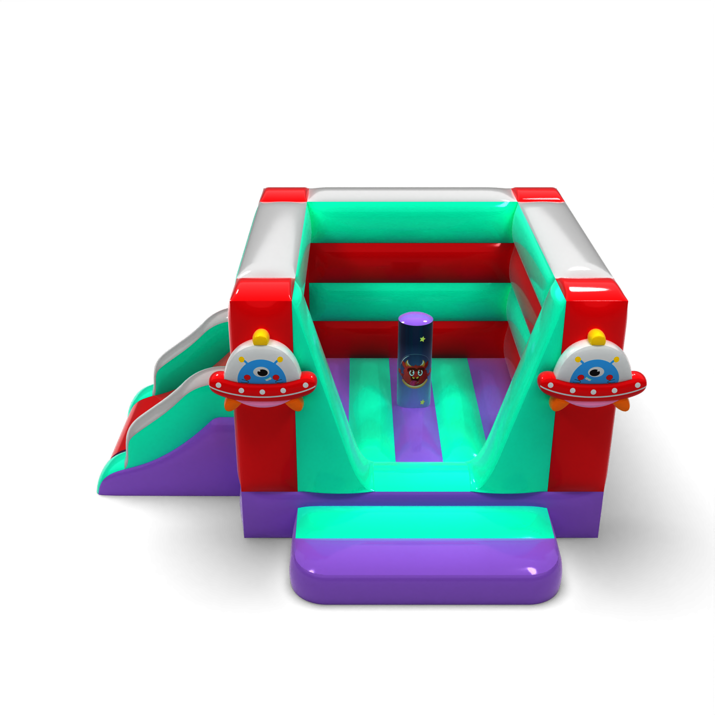 The space bouncer version with slide is an added attraction that extends play time and encourages physical activity. The colourful elements and flying saucer motifs build a welcoming atmosphere, and the compact size allows it to be installed both outdoors and indoors. This is a practical solution for the HoReCa industry and event organisers who want to offer children an attractive and safe play space. Ensure a modern focal point that can be easily adapted to different event scenarios.