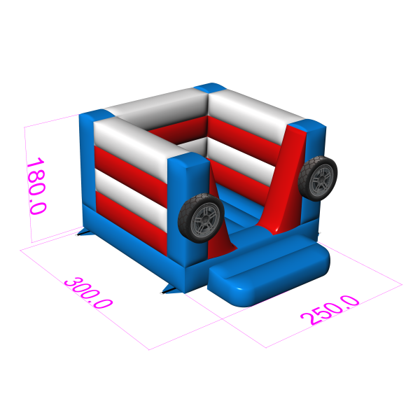 The bouncy castle in an automotive theme is a compact attraction that catches the eye with its colourful graphics and simple form. The automotive themed decoration makes the unit ideal for family events and outdoor parties. The enclosed design guarantees a safe play space, and the low height allows it to be set up comfortably even inside venues. Add an attraction to your offer that works at any time of the year.