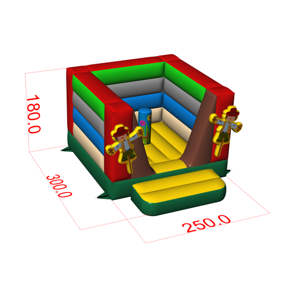 This compact inflatable is a nod to the countryside, which will particularly appeal to the little ones. With its colourful colours, friendly scarecrows and safe jumping area, the attraction is ideal as a children's play area in hotels, restaurants and event spaces. Thanks to its low height, it can also be unfolded indoors.
