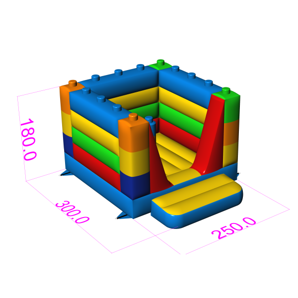 A visually appealing bouncy castle that resembles a construction of large, colourful blocks. The simple form and low height (180 cm) allow the attraction to be set up without problems also indoors. It will work well at family events, restaurants with a play area or hotel animation areas.