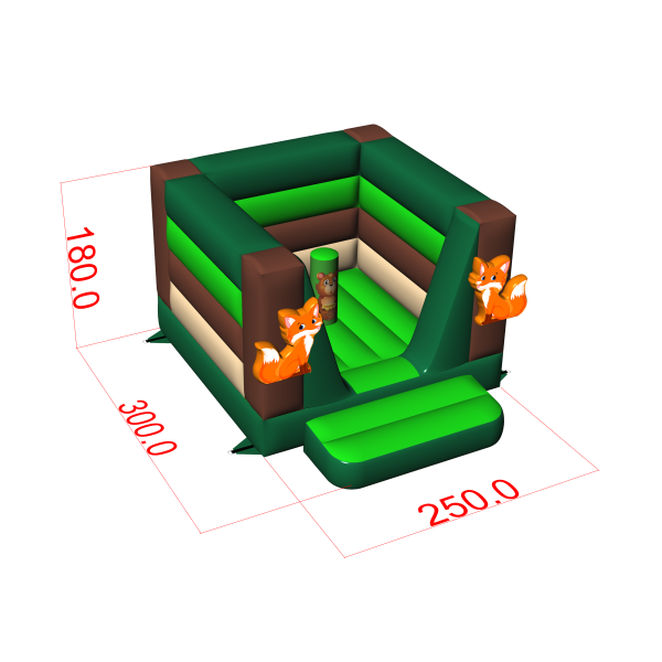 The bouncy castle in natural colours with cheerful foxes on the front is inspired by the atmosphere of the forest. The compact design promotes safe play, and the low height allows the attraction to be set up indoors as well. The forest theme is easy to adapt to family picnics or outdoor events in a natural setting. Ensure a modern focal point that can be easily adapted to different event scenarios.
