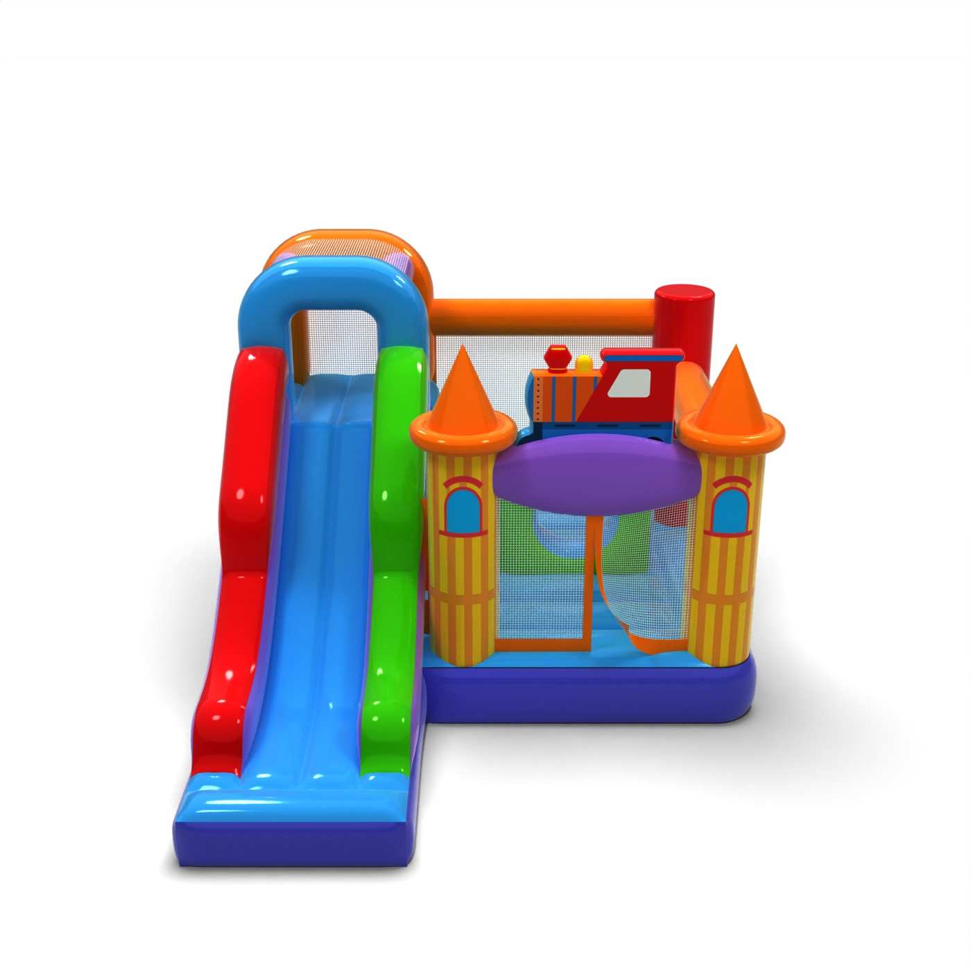 Bouncy castle funfair combo is designed for all fans of joyful bouncing. Children love playing on it – jumping around and taking on roles inspired by the attraction’s theme. Bouncy castle funfair combo isn’t made just for the youngest kids. Inflatables from this category are often richly decorated and filled with features that encourage active outdoor fun. Inflatable castles can create a fantastic world of adventure, perfect for hours of joyful play with friends and peers. It can also be combined with other products from our range to build a beautiful, fairy-tale experience full of excitement and movement.