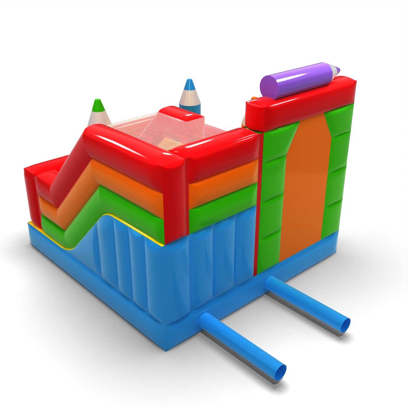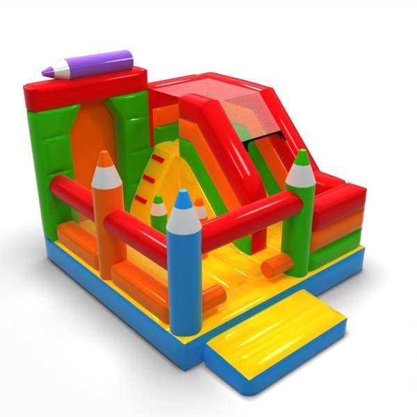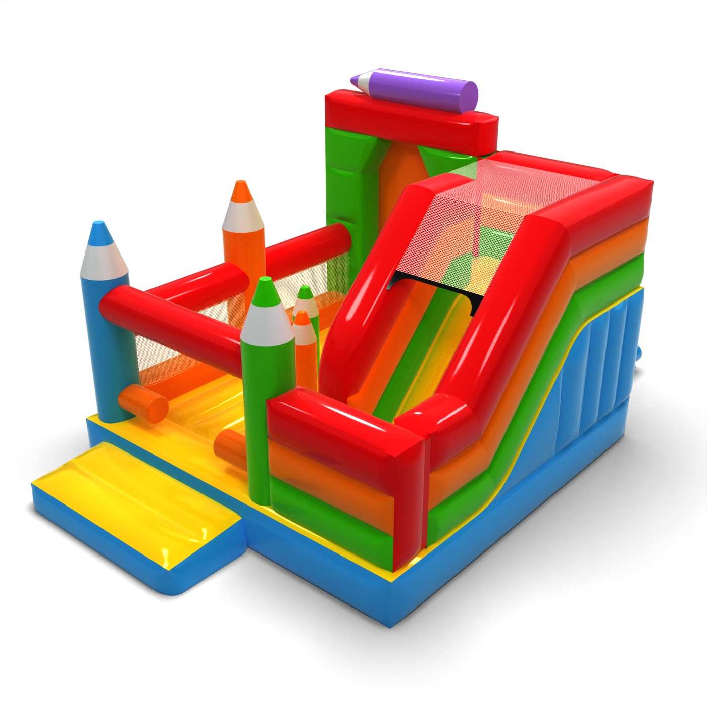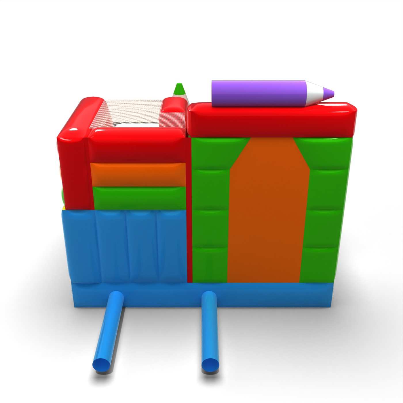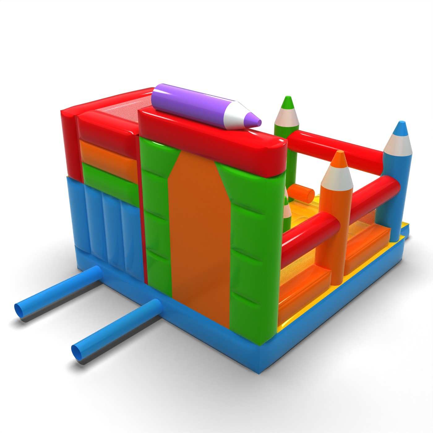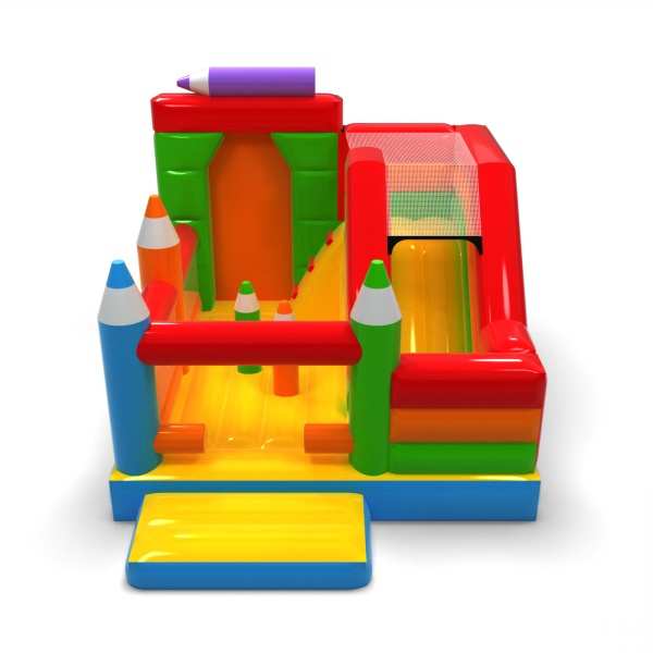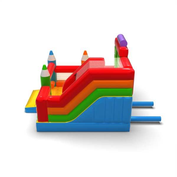 The chalky form of the structure gives this attraction a creative and friendly character that is immediately associated with fun and creativity. The combination of the jumping area with the slide allows children to actively enjoy the attraction and keeps their interest for longer. The pastel aesthetic and distinctive crayon-shaped elements build a light, educational atmosphere for the event. It is a versatile proposition for rental companies serving family festivals and animation zones. The attraction will work well at picnics, school events and outdoor children's parties.