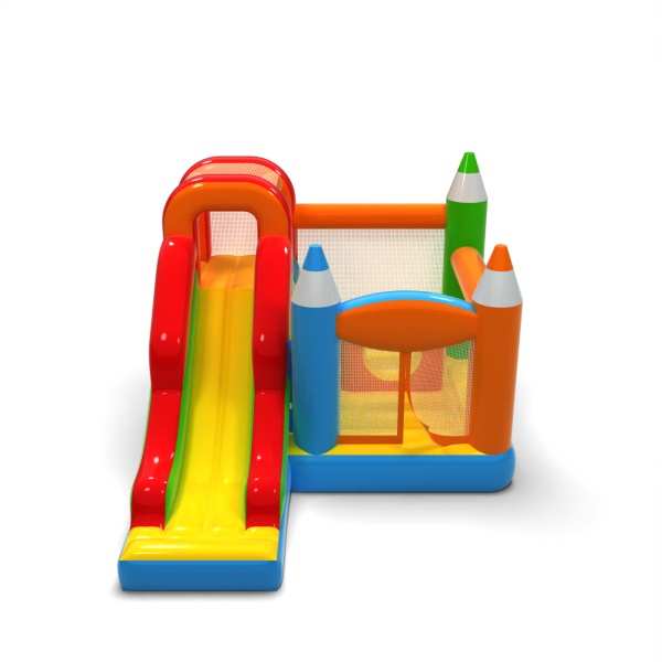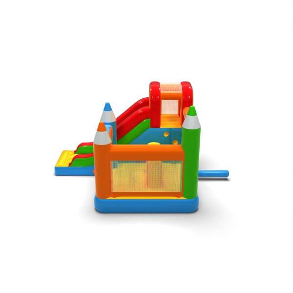 The chalky design elements give this attraction a light, creative look that stands out from classic inflatables. The combination of jumping and sliding provides children with varied fun and a natural rotation of participants. The pastel colour scheme builds a calm, educational atmosphere conducive to family fun. It is a practical choice for rental companies looking for an attraction with universal appeal and friendly aesthetics. The inflatable will work well at festivals, picnics and outdoor animation zones.