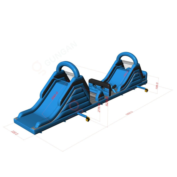 Inflatable obstacle courses can be connected with Velcro, allowing you and others to enjoy thrilling, extended playtime. The attractions in our offer often feature slides and additional obstacles such as climbing walls. Moreover, inflatable courses can be expanded with inflatable crossbars and posts “emerging” from the ceiling and floor, making it harder to pass and slowing competitors down. This attraction serves as a perfect arena for healthy and exciting competition. Such play brings lots of joy and positive energy.