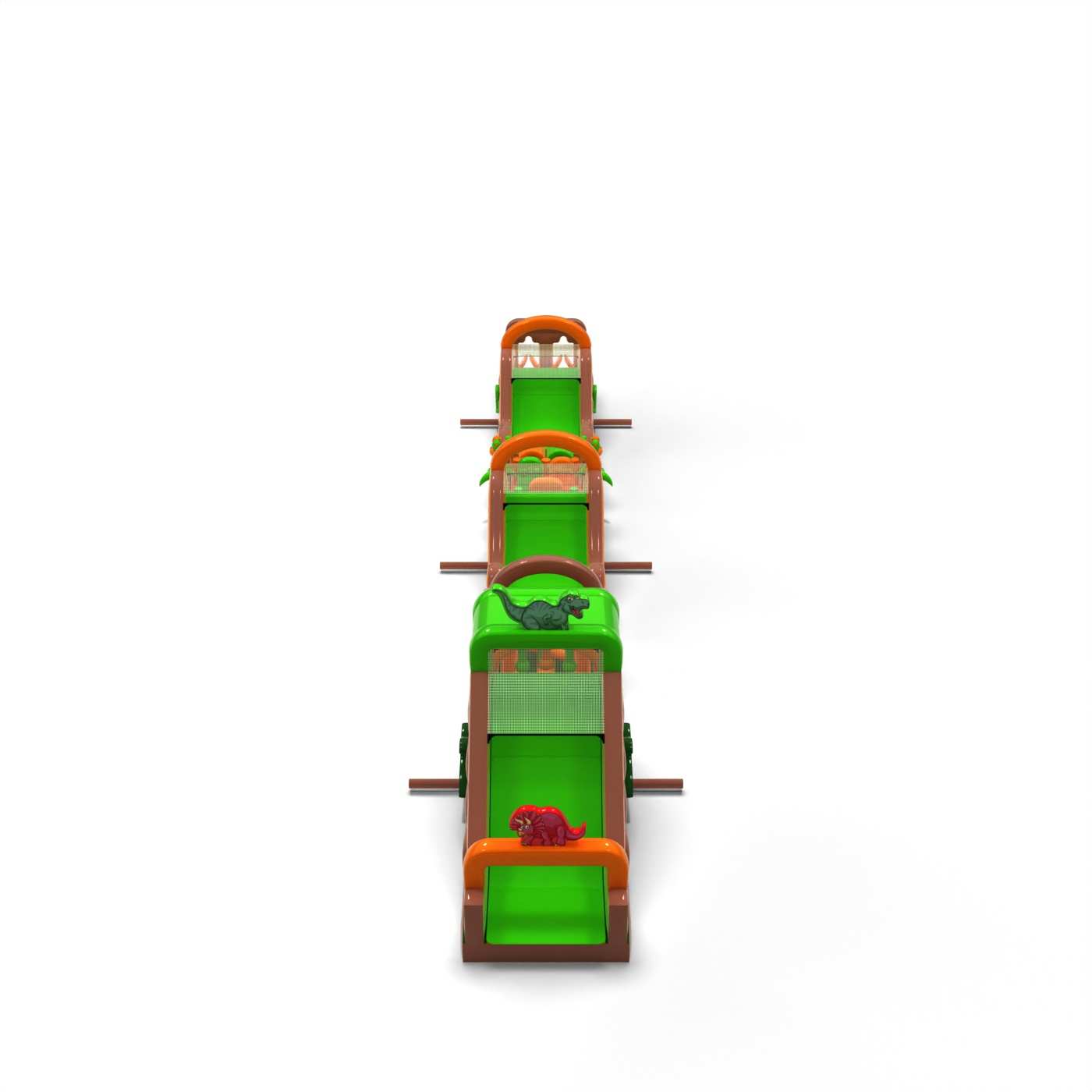 The monumental track in a dinosaur atmosphere creates a spectacular fun zone that becomes the focal point of every event. The very long and varied obstacle course allows for intense competition, a high turnover of participants and long retention of interest in the attraction. It is a professional structure prepared for large events, where stability, durability and trouble-free operation count. This type of track is a strong investment product, often chosen by clients looking for large-scale attractions with high earning potential. It will work best for mass events, festivals and large outdoor productions where scale, spectacle and reliable capacity throughout the day are important.