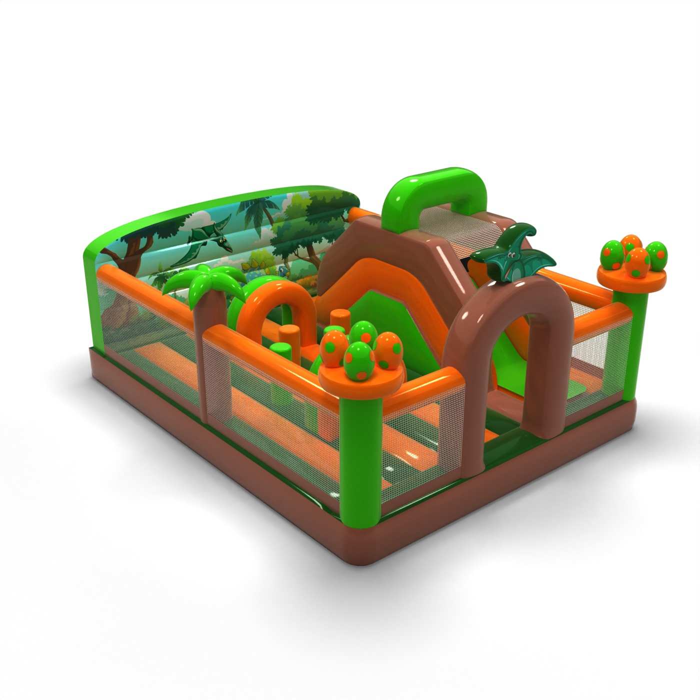 The Jurassic atmosphere and compact form create an attractive play area that quickly attracts children and encourages activity. The interior of the playground offers a variety of elements for jumping and movement, so that play remains dynamic and engaging. The dinosaur design builds a cohesive, adventurous narrative and fits well with the themed animation zones. It's a practical solution for rental companies looking for an attraction with broad appeal and good participant turnover. The playground will work well at festivals, family picnics and outdoor events where a compact but clearly visible attraction is needed.
