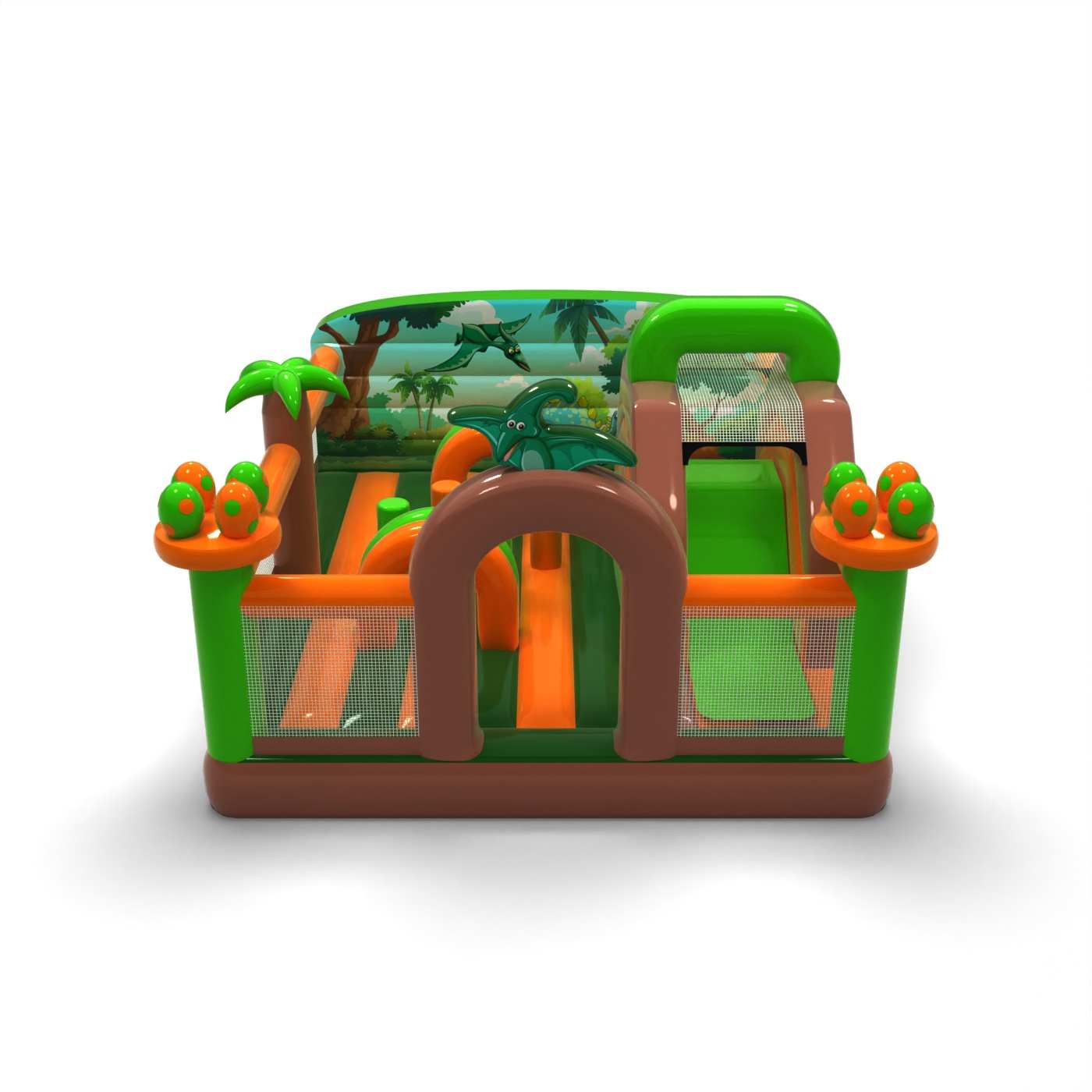 Inflatable playground 6x5 in dino theme is primarily designed for children looking for adventure while playing with friends and peers. The inflatable playground is enclosed and cushioned, making it completely safe to use. It usually features both a large and a small slide, ensuring great fun for kids of various ages. Inflatable playground 6x5 in dino theme is an excellent choice for family picnics, corporate and team-building events, or any other type of gathering — both outdoors and indoors. Inflatable playgrounds are a great alternative to larger, more demanding inflatables. We especially recommend this attraction for those just starting a rental or events business.