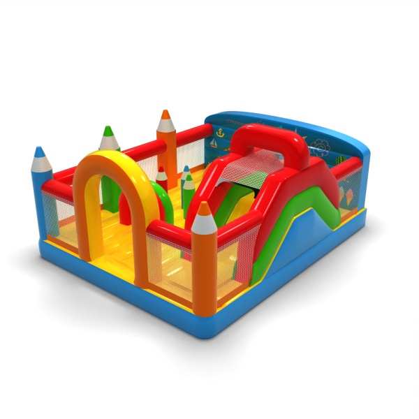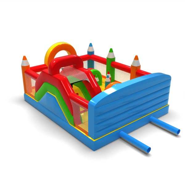 Inflatable playground 6x5 in crayon theme is primarily designed for children looking for adventure while playing with friends and peers. The inflatable playground is enclosed and cushioned, making it completely safe to use. It usually features both a large and a small slide, ensuring great fun for kids of various ages. Inflatable playground 6x5 in crayon theme is an excellent choice for family picnics, corporate and team-building events, or any other type of gathering — both outdoors and indoors. Inflatable playgrounds are a great alternative to larger, more demanding inflatables. We especially recommend this attraction for those just starting a rental or events business.