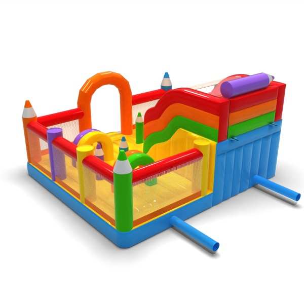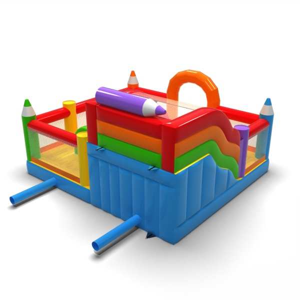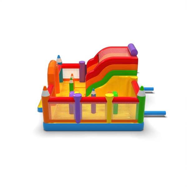 Inflatable playground 6x6 in crayon theme is primarily designed for children looking for adventure while playing with friends and peers. The inflatable playground is enclosed and cushioned, making it completely safe to use. It usually features both a large and a small slide, ensuring great fun for kids of various ages. Inflatable playground 6x6 in crayon theme is an excellent choice for family picnics, corporate and team-building events, or any other type of gathering — both outdoors and indoors. Inflatable playgrounds are a great alternative to larger, more demanding inflatables. We especially recommend this attraction for those just starting a rental or events business.