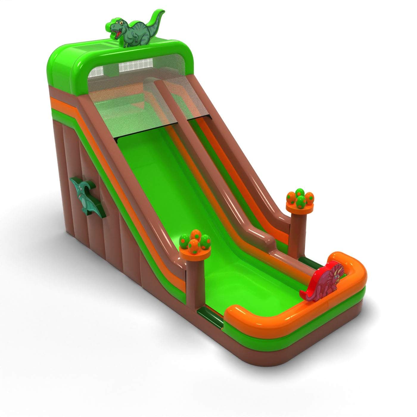 Enlarged inflatable slide in dinosaur theme