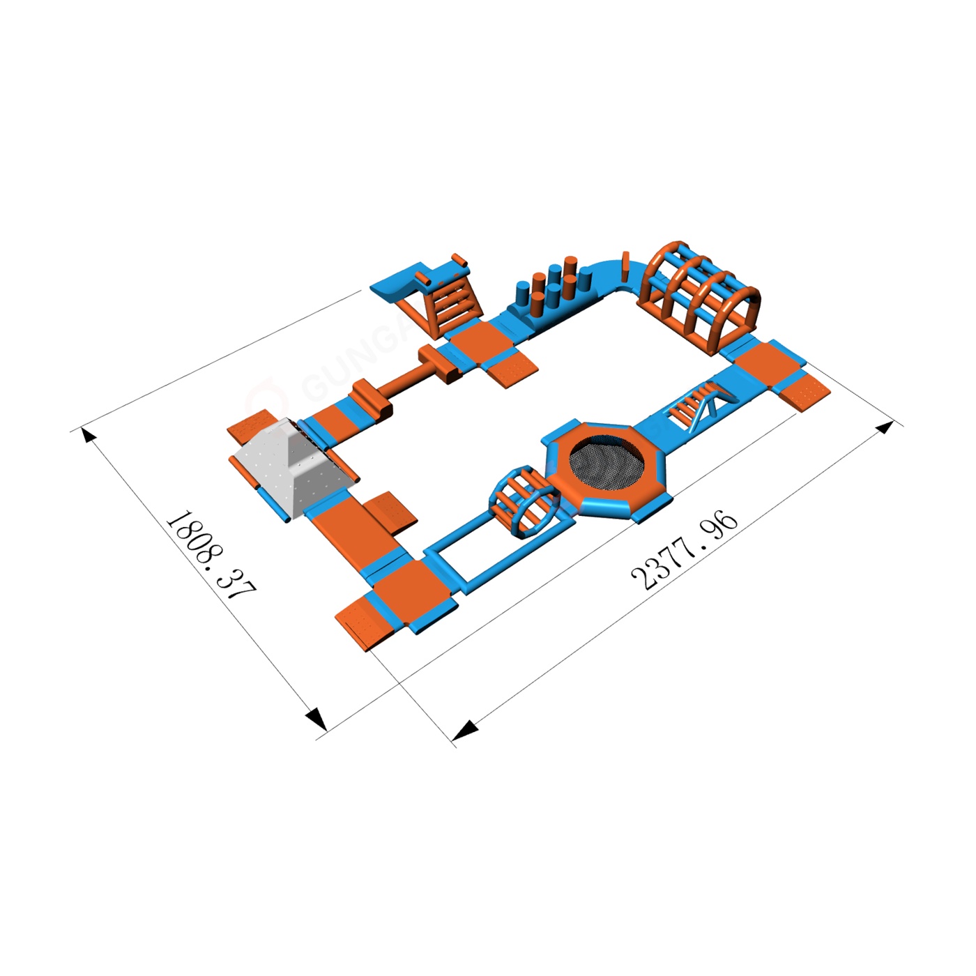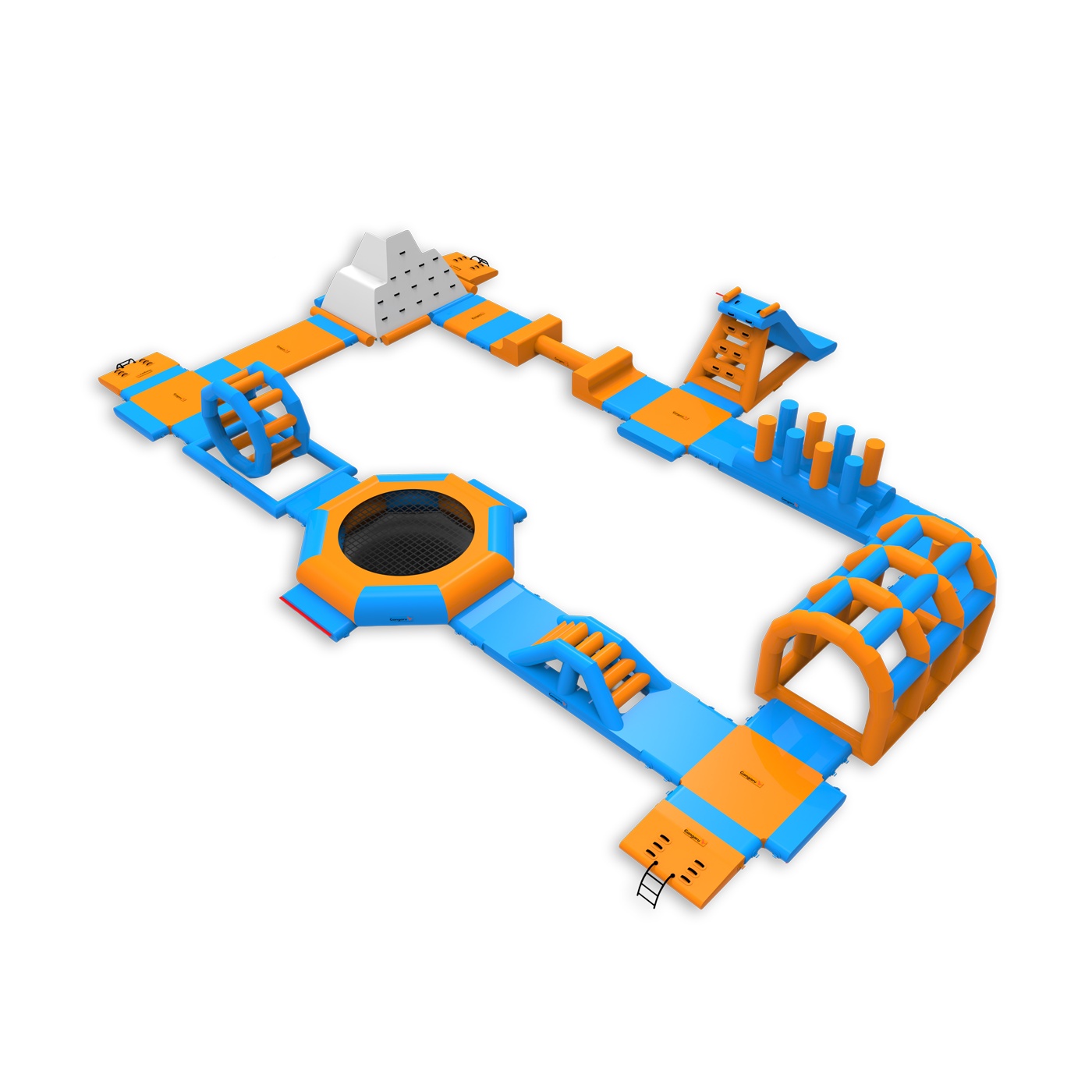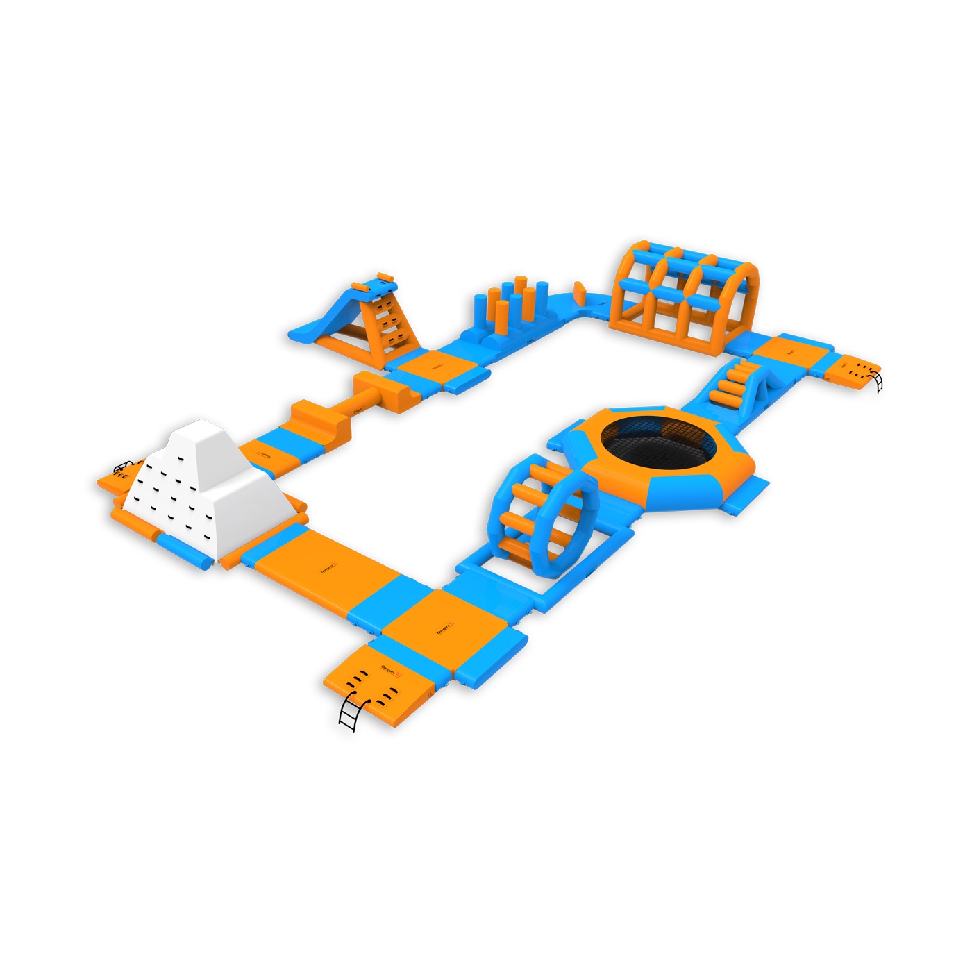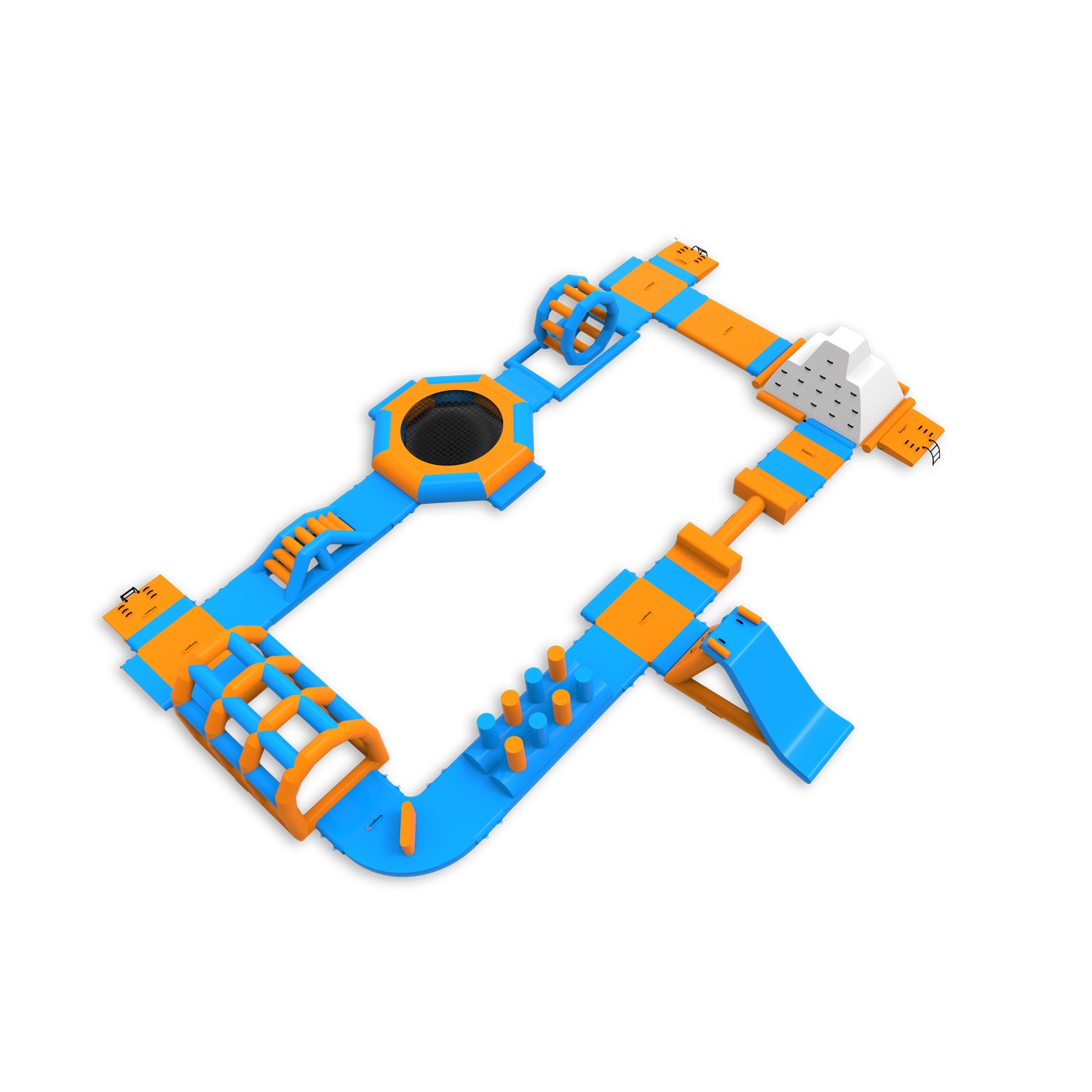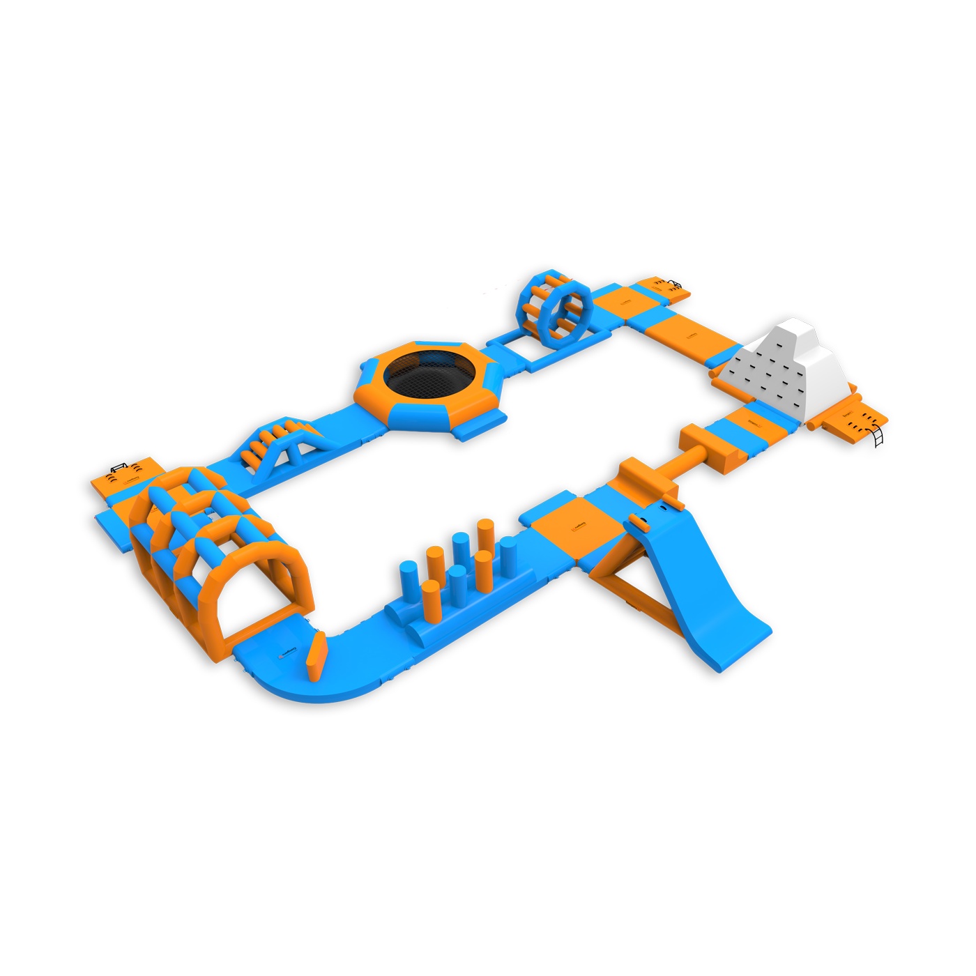 The Beta inflatable water park is a complex water attraction consisting of a variety of elements such as slides, obstacles and bridges. The park provides dynamic and immersive fun for participants of all ages, offering outdoor excitement. Ideal for larger outdoor events, it provides an unforgettable experience and active water recreation.