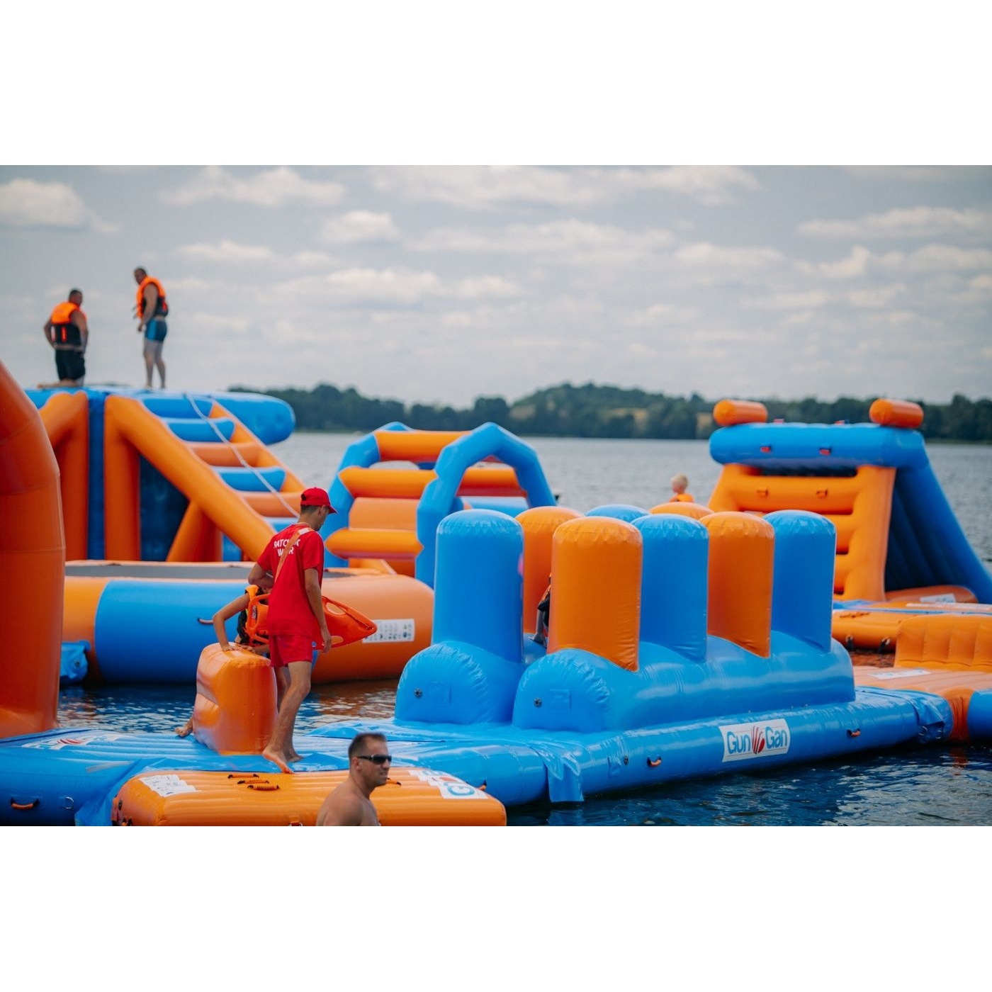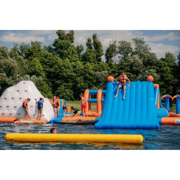An inflatable water park is an unforgettable thrill on long summer days. These products are an absolute hit with every age group, from the youngest to adult lovers of water fun. Inflatable water parks can be expanded with additional slides. Rest by the water can be turned into a series of great adventures and chases on an inflatable water park. Test yourself on obstacle courses, jump over the monkey grove and hover just above the water surface. Jump off with the help of a huge inflatable cushion. The inflatable water park is ideal for the development of a water body space. The inflatable water park is fully mobile, foldable and transportable. You can expand the inflatable water park with new elements with each passing season. Why invest in an inflatable water park for children and adults? With such an attraction you will answer the needs of customers who are thirsty for cooling off on hot days. Multidimensional obstacles allow you to create an attraction that attracts customers, and their complexity excludes boredom. Organize competitions for the less experienced and for the more advanced. Inflatable water parks allow you to fully engage children for a long time in a safe environment. Thus, parents and caregivers can use the moment to relax right next to the inflatable water park.