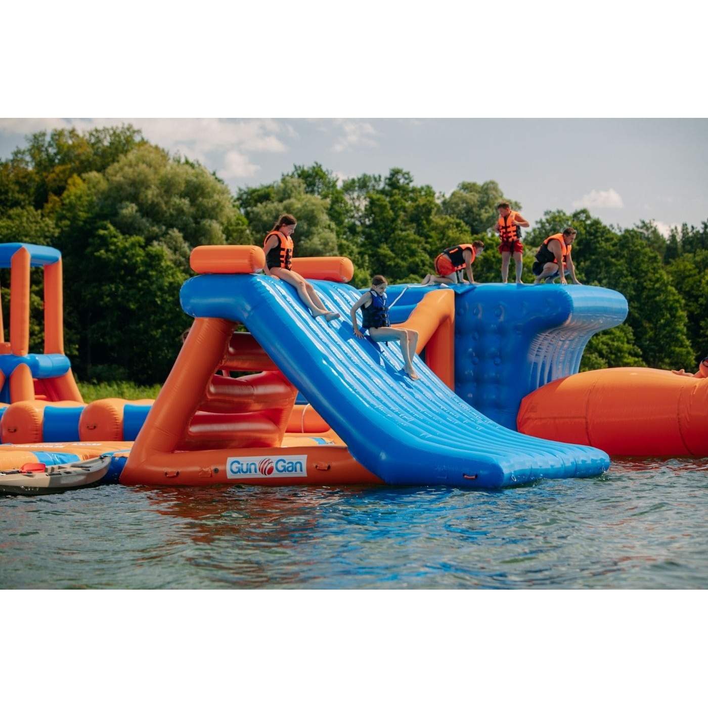 An inflatable water park is an unforgettable thrill on long summer days. These products are an absolute hit with every age group, from the youngest to adult lovers of water fun. Inflatable water parks can be expanded with additional slides. Rest by the water can be turned into a series of great adventures and chases on an inflatable water park. Test yourself on obstacle courses, jump over the monkey grove and hover just above the water surface. Jump off with the help of a huge inflatable cushion. The inflatable water park is ideal for the development of a water body space. The inflatable water park is fully mobile, foldable and transportable. You can expand the inflatable water park with new elements with each passing season. Why invest in an inflatable water park for children and adults? With such an attraction you will answer the needs of customers who are thirsty for cooling off on hot days. Multidimensional obstacles allow you to create an attraction that attracts customers, and their complexity excludes boredom. Organize competitions for the less experienced and for the more advanced. Inflatable water parks allow you to fully engage children for a long time in a safe environment. Thus, parents and caregivers can use the moment to relax right next to the inflatable water park.