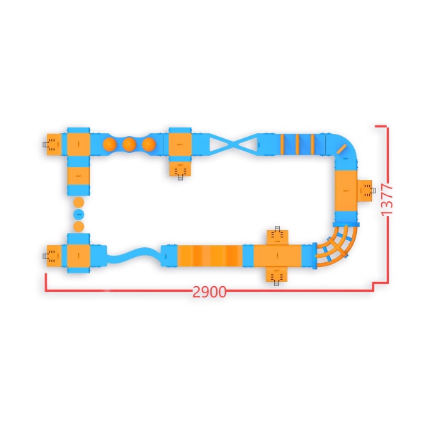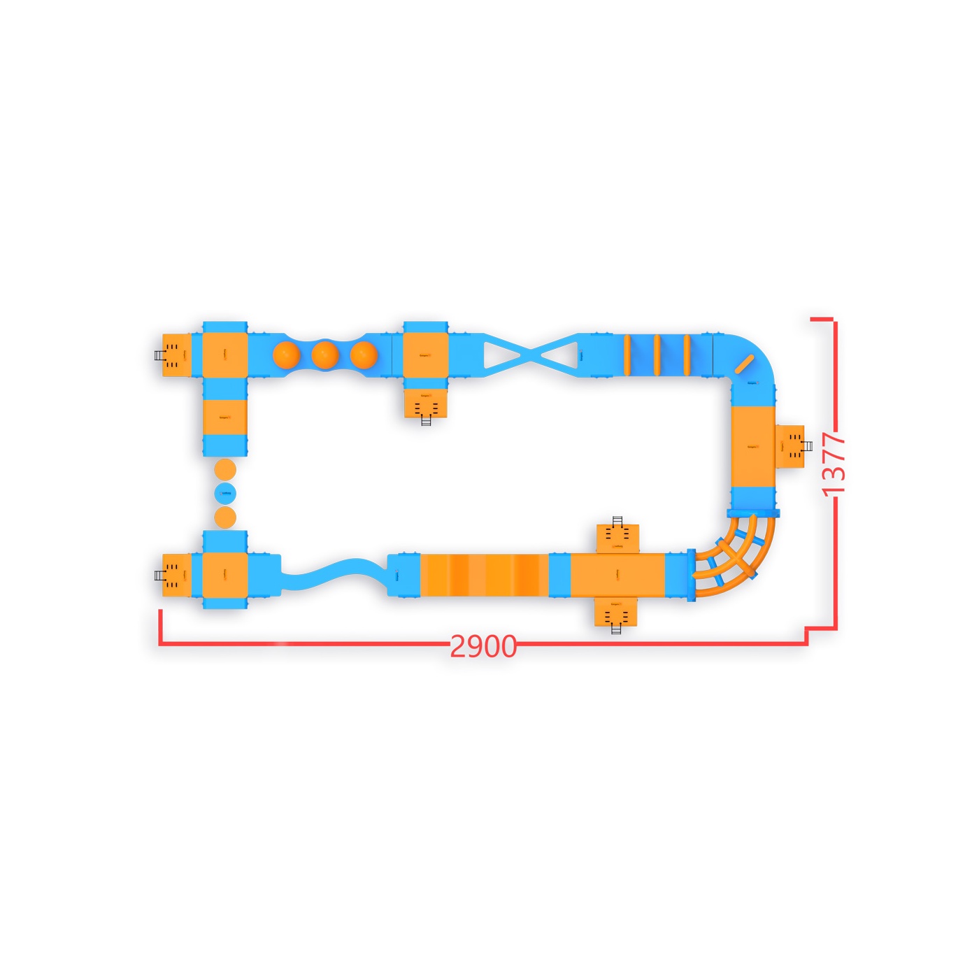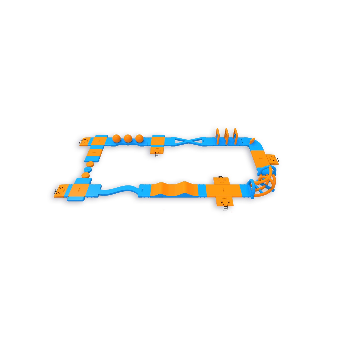 Wipeout balls catch the eye first - and keep participants eager to return for another round. The 380m² circuit with its undulating path, hills and bar crossing provides activity for a wide cross-section of participants - regardless of age or fitness level. Designed to accommodate 40 people at a time, it works well on bodies of water with limited width where accessibility of the attraction and high guest turnover are important.