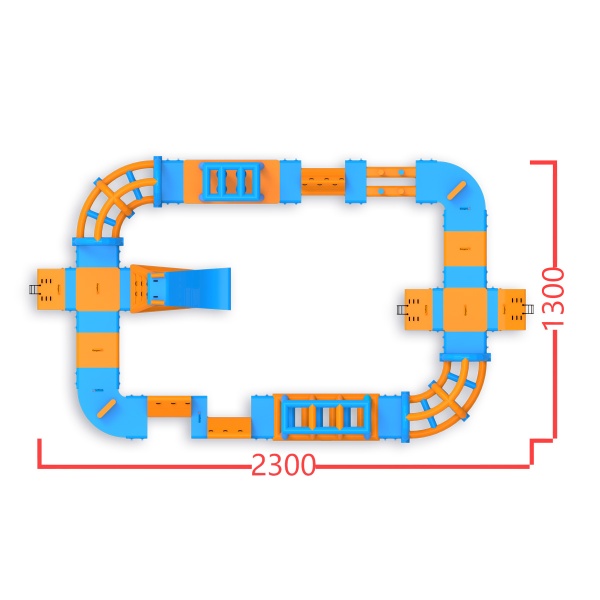 There is something for everyone in the Omikron park - the slide attracts the eye from the very entrance, the bar crossing demands full commitment, and the climbing and side walls demand cleverness and strength. The compact 299 m² layout designed for 32 people at a time works well on smaller bodies of water, where the intensity of the attractions on each metre of surface counts.